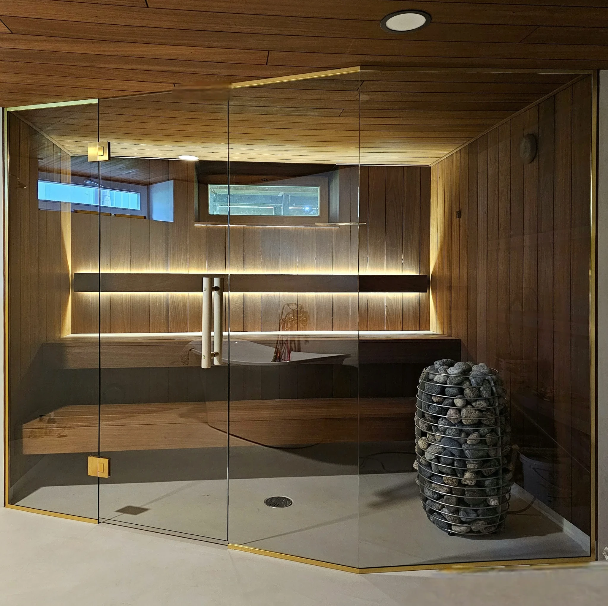 Glass sauna doors and walls are suitable for various sauna types – wood-burning, steam, and infrared saunas. Our selection includes various glass types, including gray, bronze-tinted, and frosted glass. Tinted glass adds coziness and increases privacy.